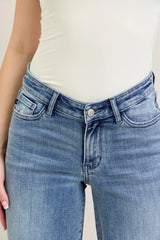 Slip into effortless cool with the Judy Blue Off Duty V - Front Baggy Jeans. These light blue wash beauties feature authentic vintage fading for that laid-back, tried-and-loved vibe. Crafted from a high-quality denim blend, they offer a comfy mid-rise fit and a relaxed wide-leg cut that flows all the way to a floor-grazing hem. Button zip closure seals the deal for easy styling that’s perfect for off-duty days with a playful twist.
