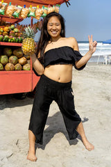 Perfect for - The beach, going out, yoga, lounging, being comfortable, during meditation, during breathwork, brunch, running errands, vacation and anytime you want to create an effortless, beachy look. The Off the Shoulder Crop Top pairs perfectly with your PIYOGA shorts, capris and pants!
