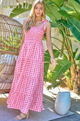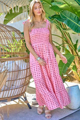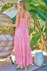 This Adorable Smocked Maxi Is Perfect For Any Vacation - Are You Thinking A Cruise? You Can Even Throw A Denim Jacket Over It & Carry It Into Fall. A Square Neckline That FallsI nto A Smocked Bodice. Self Tie Shoulder Straps. Tiered Flowy Silhouette. 100% Polyester Lining. A Relaxed Fit But I Suggest Staying True To Size.