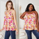 Double Take Floral Scoop Neck Ruffle Hem Cami