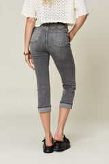 If you had one wish, you're going to want the One Wish from Judy Blue: High-Rise Button Fly Denim Capri! This high-rise denim capri features a grey wash with whiskering, button fly, non-distressed with the exception of a little wear on the edge of the front pockets, and minimal wear on the hem. This is the perfect capri that can be worn cuffed or uncuffed. Pair with a bright color top for a little pop of color!